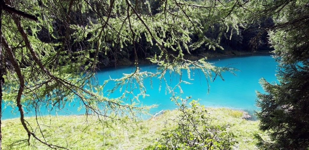 Das Bergell ist ein sehr abgeschiedenes Tal. Doch der Stempel der Zivilisation ist unübersehbar mit der gewaltigen, das Tal dominierenden Sperre des hochgelegenen Albigna-Stausees; eine einzige Strasse durch das Bergell verbindet das Oberengadin mit Italien; Hochspannungsleitungen hangeln sich durch das ganze Tal. Gegenüber Löbbia treffen wir auf den kleinen Stausee eines Wasserkraftwerkes, dessen smaragdgrünes Wasser durch die Lärchenbäume leuchtet.