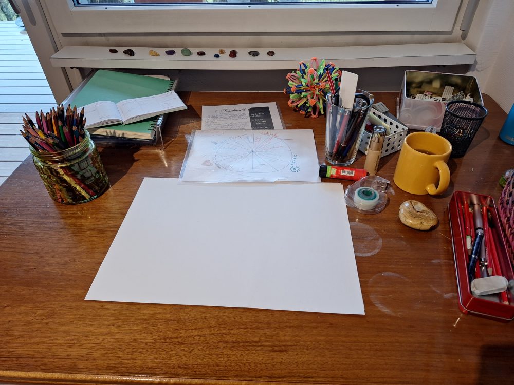 Diese Phase ist mir sehr wichtig. Meine innere Kraft brauche ich, damit ich den Anforderungen des Alltags angemessen begegnen kann. Und jetzt ist für mich auch die Zeit für Kreativität gekommen. Vieles liegt da und will geordnet werden.